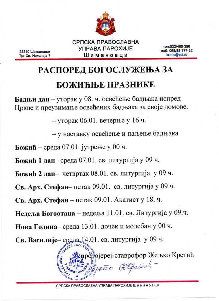 У прилогу је и распоред богослужења за Божићне празнике, како би сви могли планирати своје време за посету свом светом храму.